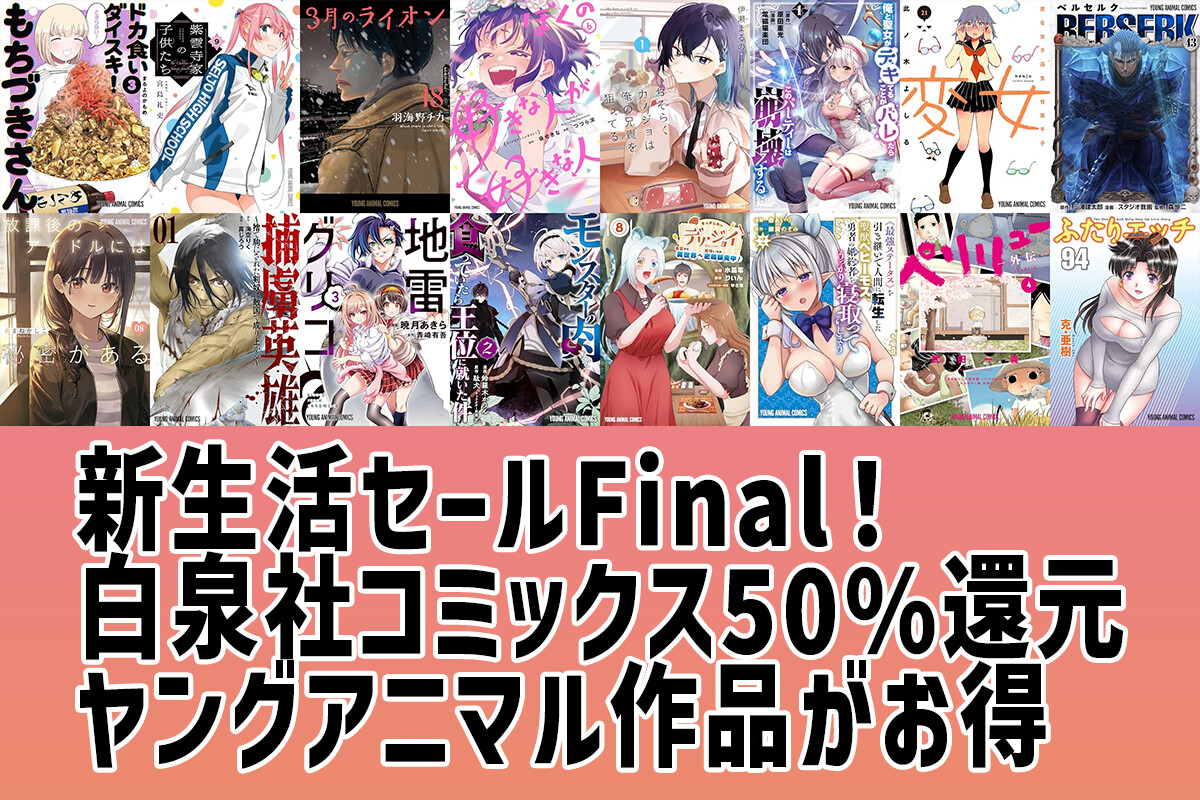 【50%還元】「ドカ食いダイスキ! もちづきさん」対象!Kindleで白泉社 ヤングアニマルコミックスが全巻50%還元 「紫雲寺家の子供たち」「3月のライオン」なども【新生活セールFinal】