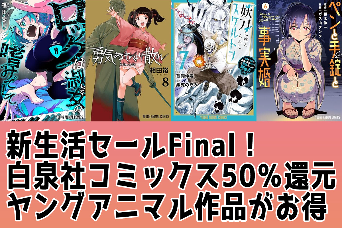 「ロックは淑女の嗜みでして」「勇気あるものより散れ」など対象!Kindleで白泉社 ヤングアニマルコミックスが全巻50%還元 30作品以上【新生活セールFinal】