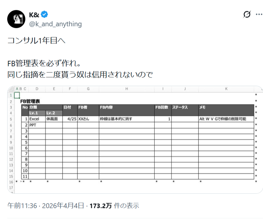 【画像】有識者「社会人1年目へ。必ずコレ作れ!」FB管理表ドンッ