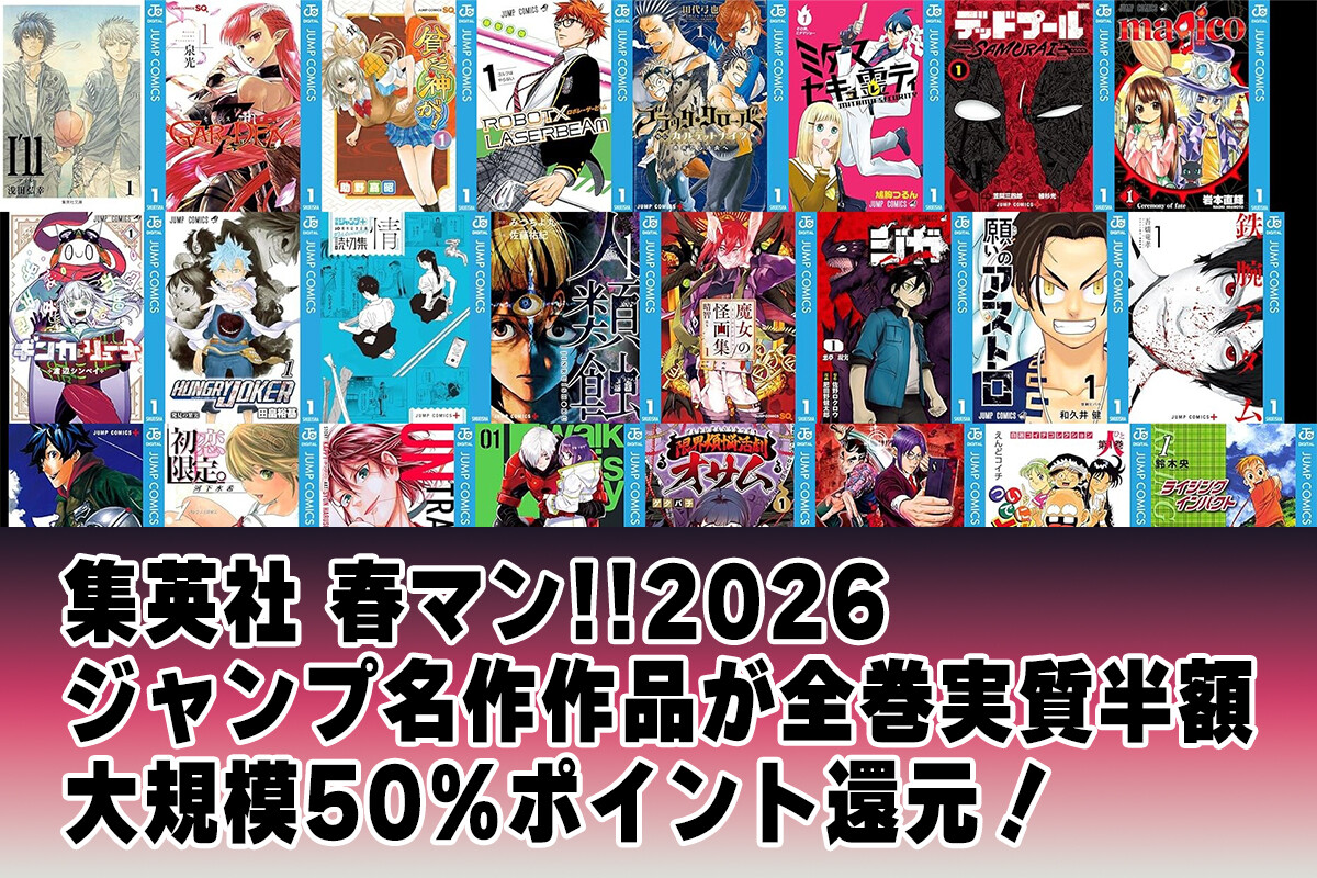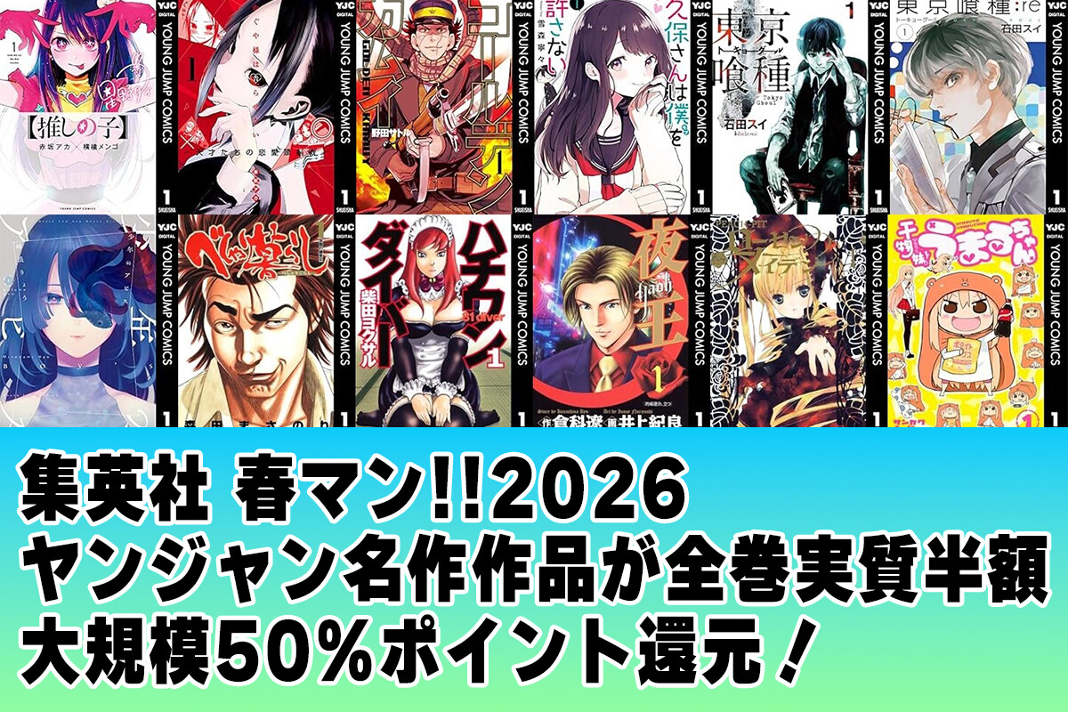 5日まで!「【推しの子】」「かぐや様」「金カム」実質全巻半額!Kindleでヤングジャンプコミックス大規模50%還元 【集英社 春マン!!】