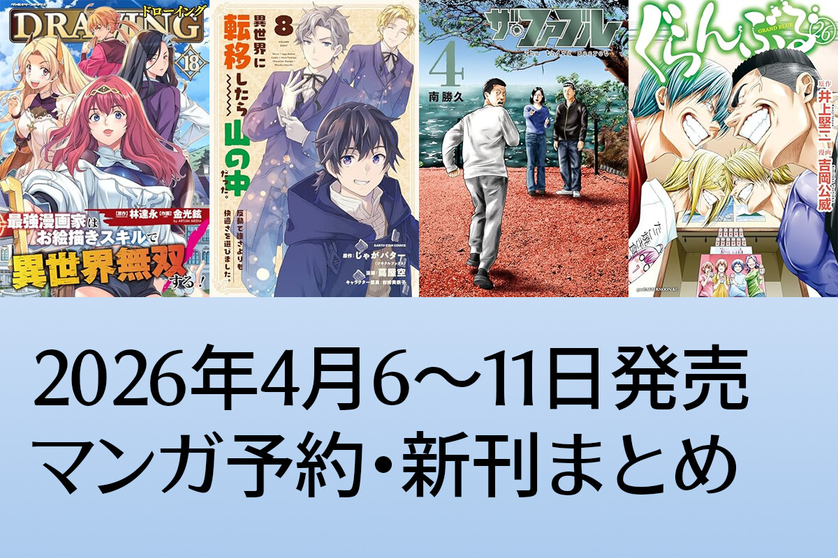 【マンガ予約】「ドローイング」「異世界に転移したら山の中だった。」「ザ・ファブル The third secret 4」「ぐらんぶる 26」など4月2週目の新刊