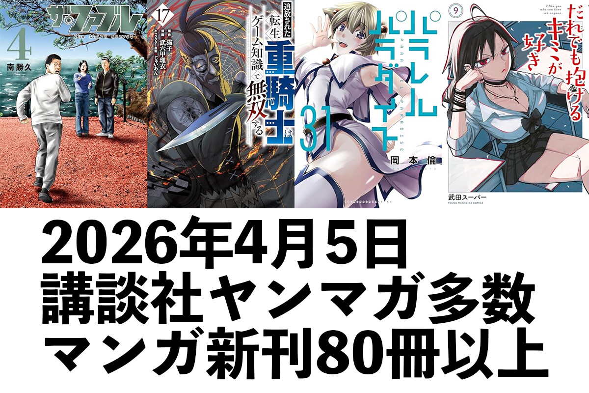 【4/6発売】マンガ新刊:「ザ・ファブル The third secret 4」「追放された転生重騎士はゲーム知識で無双する 17」「パラレルパラダイス 31」「だれでも抱けるキミが好き 9」など80冊以上