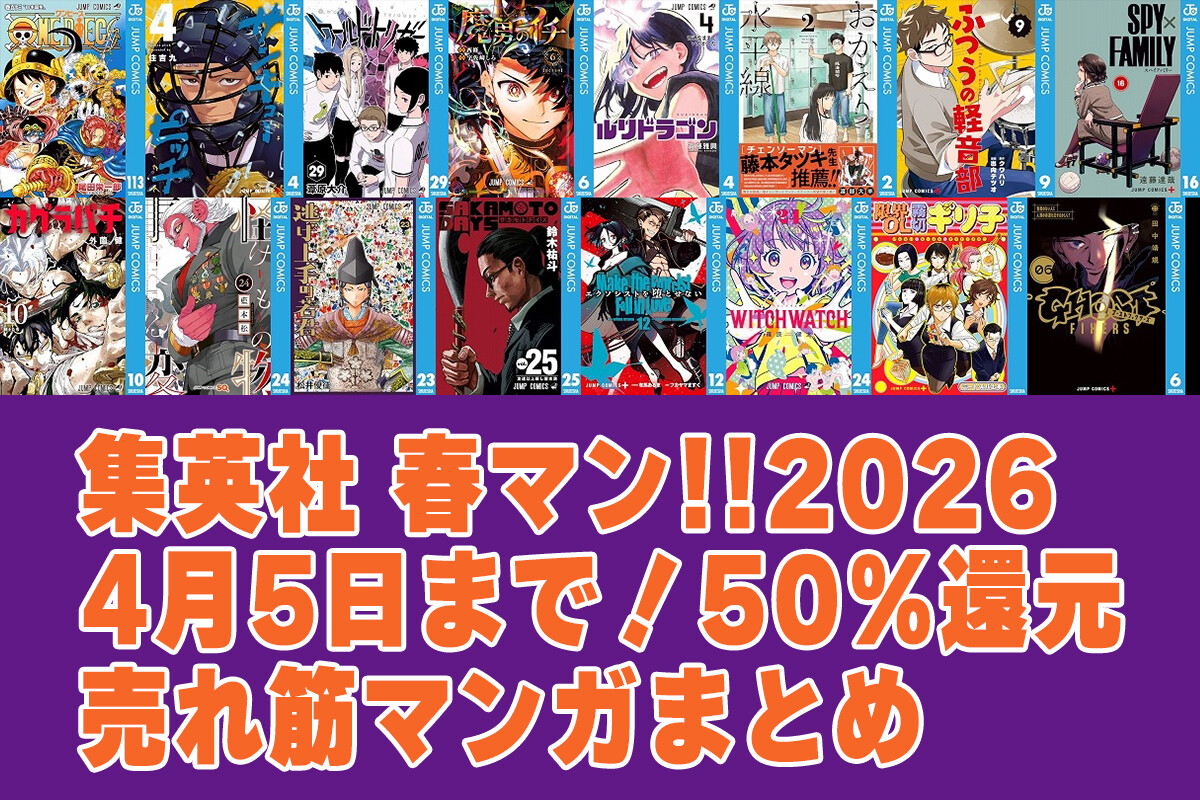 【値引きクーポン】「ONE PIECE」「サンキューピッチ」など対象!Kindleでジャンプコミックス40%OFF 「魔男のイチ」「ルリドラゴン」など40作品以上まとめ(4/9まで?)