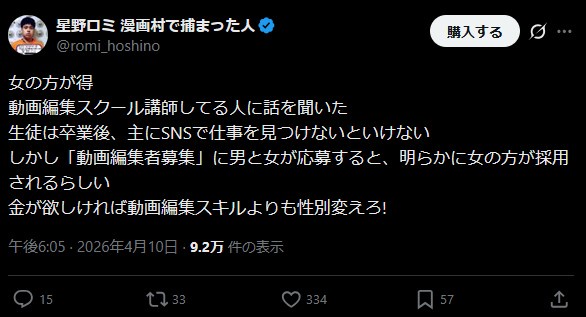 【闇深】動画編集者、「男女格差」がとんでもないことになっていたwwww