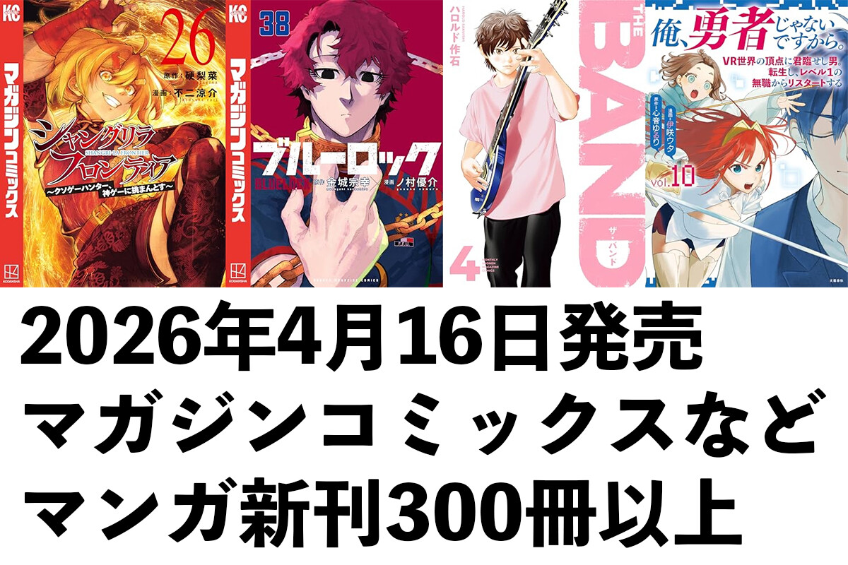 【4/16発売】マンガ新刊:「シャングリラ・フロンティア 26」「ブルーロック 38」「THE BAND 4」「カナン様はあくまでチョロい 13」「俺、勇者じゃないですから。10」など300冊以上