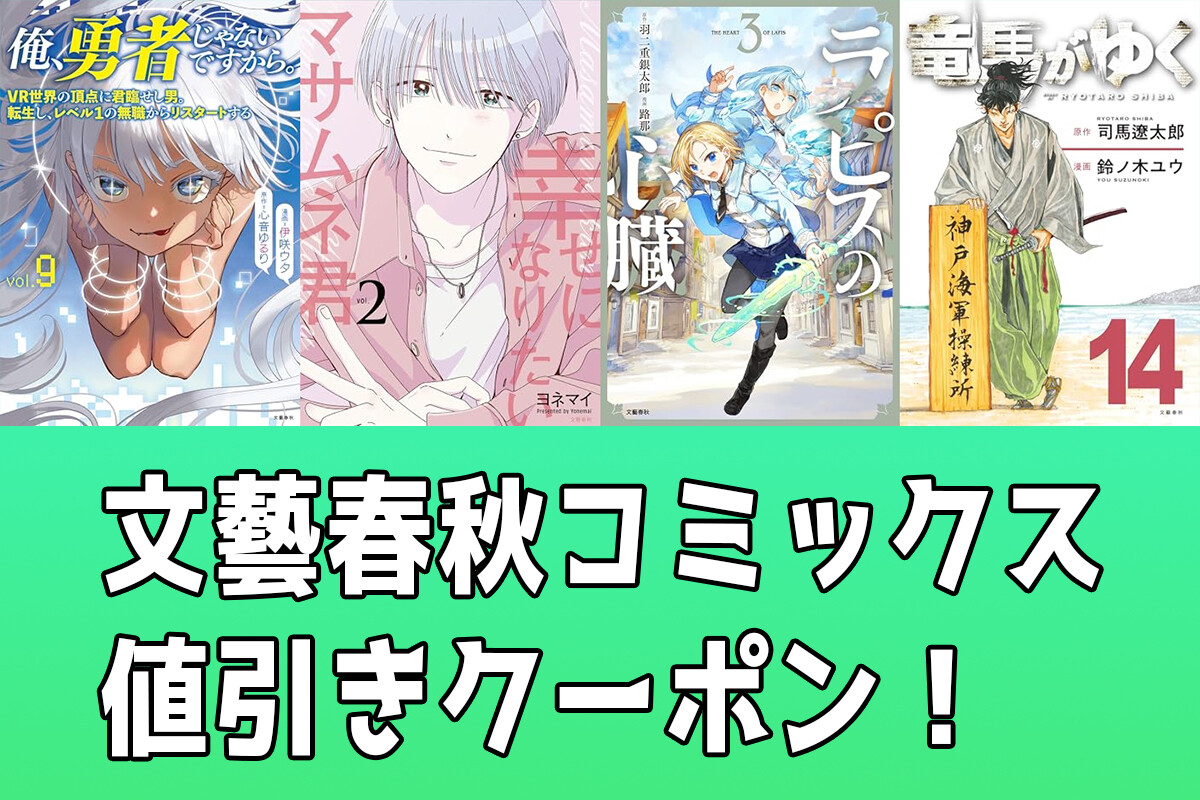 【値引きクーポン】「俺、勇者じゃないですから。」など文藝春秋コミックス40%OFF 「ラピスの心臓」「竜馬がゆく」なども