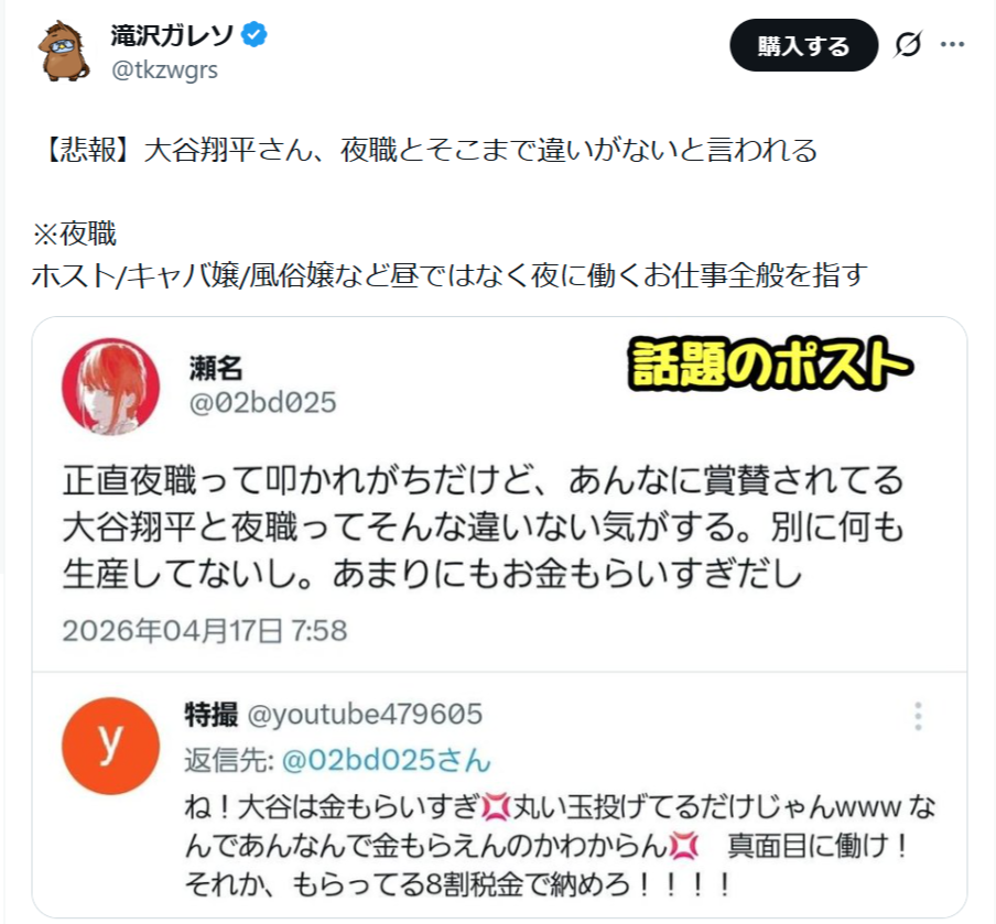 【悲報】識者「大谷翔平と夜職嬢って何が違うの?」