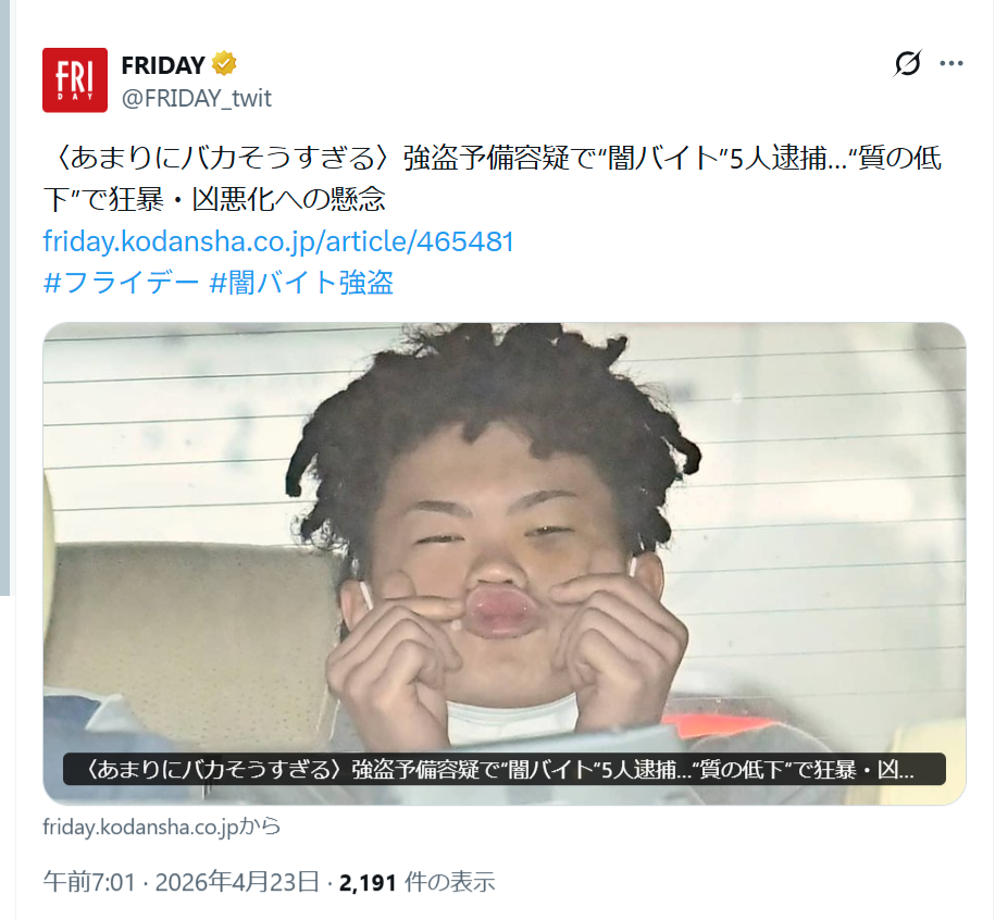 【画像】闇バイトで捕まった男の顔、見るからにバカそうで草wwwww