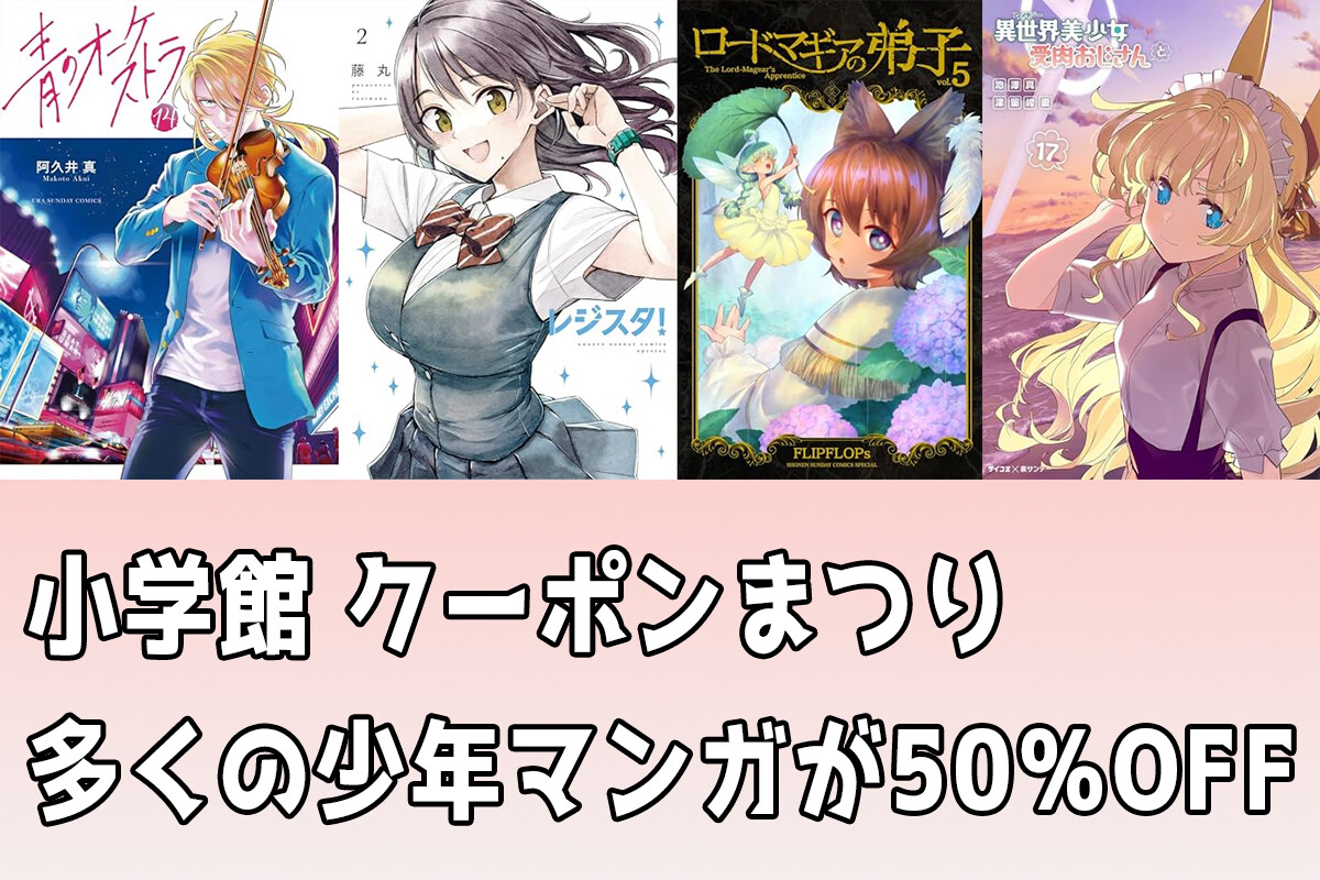 【50%OFF】「青のオーケストラ」「レジスタ!」対象!Kindleで小学館 少年マンガクーポン祭り 「ロードマギアの弟子」「異世界美少女受肉おじさんと」なども(4/29まで)