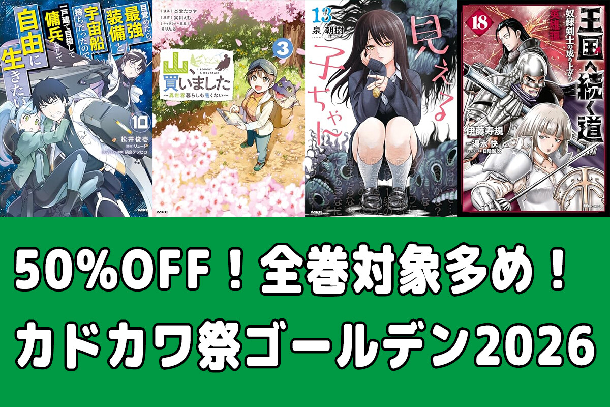 「覚めたら最強装備と宇宙船持ちだったので」「山、買いました」など、KADOKAWAコミックス50%OFF 「見える子ちゃん」「王国へ続く道」なども【カドカワ祭りゴールデン】