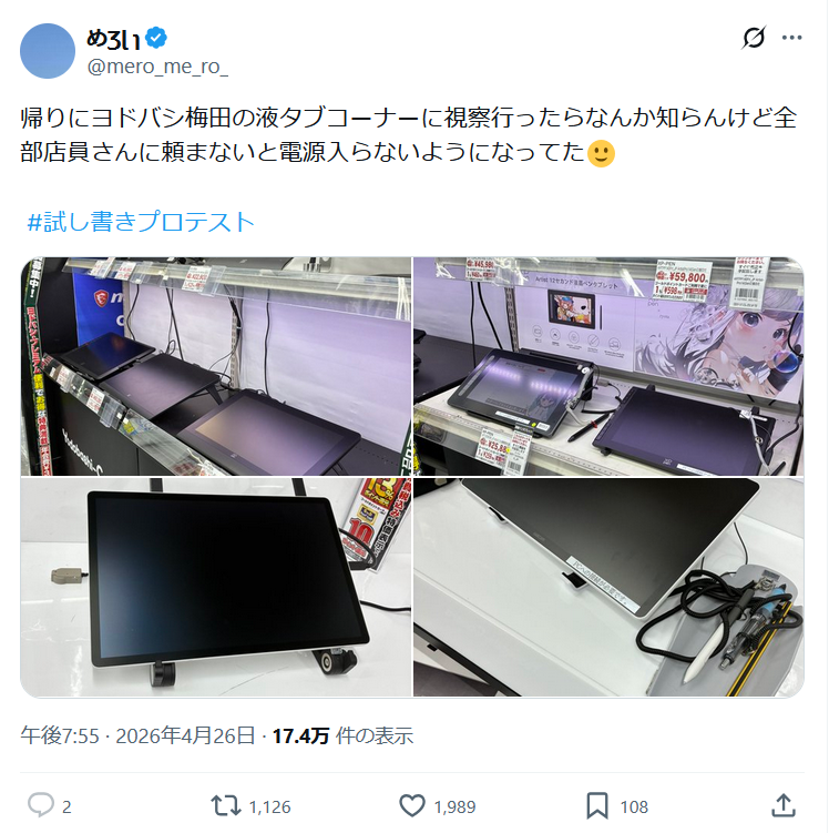 【悲報】ヨドバシの展示機、店員に頼まないと試し書きできないようになるwwww