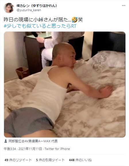 【画像】セクシー女優「撮影現場に小峠さんいたw」パシャッ