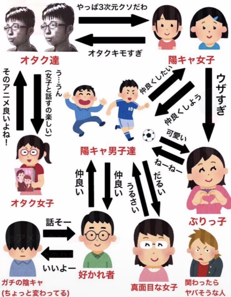 【画像】クラス内での「陰キャチー牛」のポジションがこちらwwww