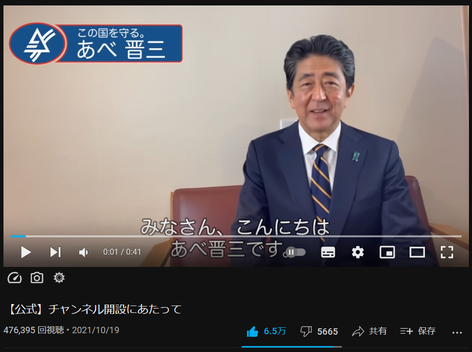 【朗報】YouTuberになった安倍元首相、40秒の動画で47万再生を叩き出してしまうwwww
