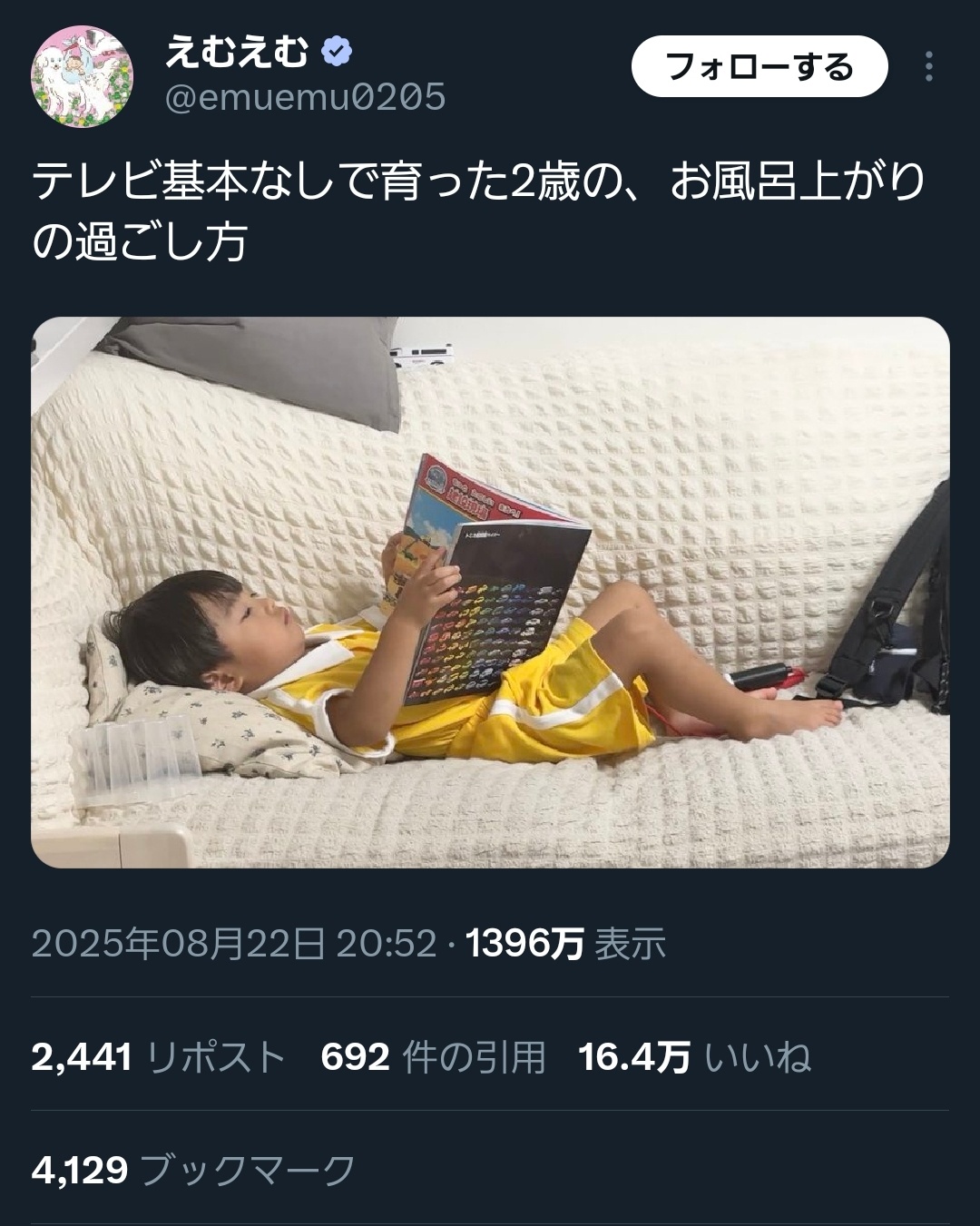 【画像】ママ「テレビなしで育った2歳の子供の姿がこちらw」(パシャッ