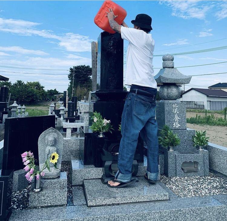 【画像】陽キャ、とんでもない格好で墓参りをしてしまうwwww