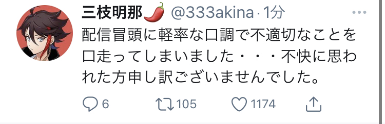 【悲報】人気VTuberさん、不適切な言動で謝罪 → 動画非公開へ…