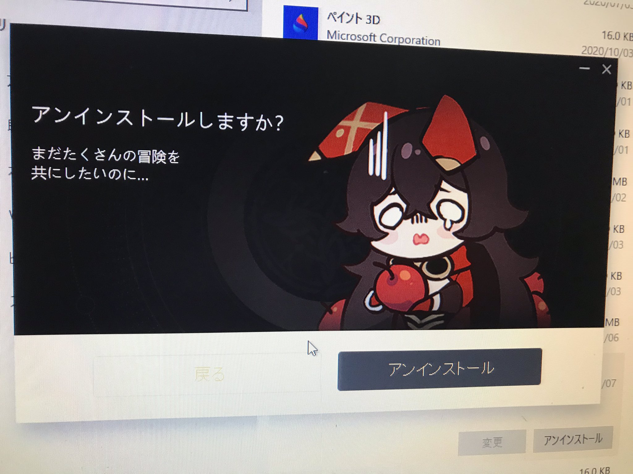 【画像】人気ゲーム『原神』をアンインストールしようとした結果www