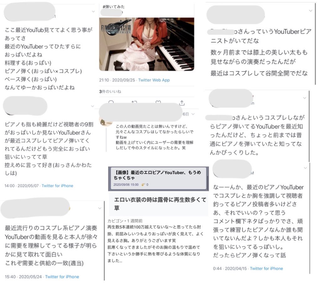 【画像】例のピアノ系YouTuber、遂にフェミの逆鱗に触れ始める…