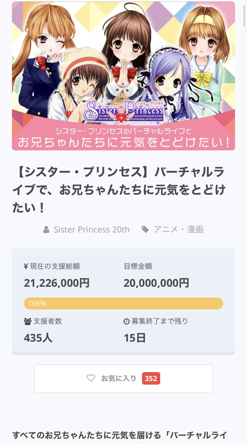 【画像】『シスプリ』のクラファン、半日で2000万円集めてしまう お兄ちゃんお金持ちだな…