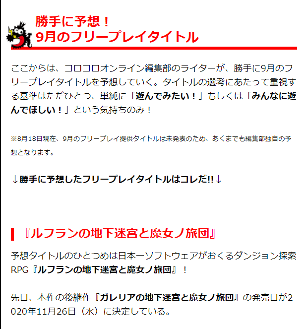 【画像】キッズ御用達雑誌「コロコロ」、何故かいきなり9月のPSフリプを勝手に予想し始めるwwww