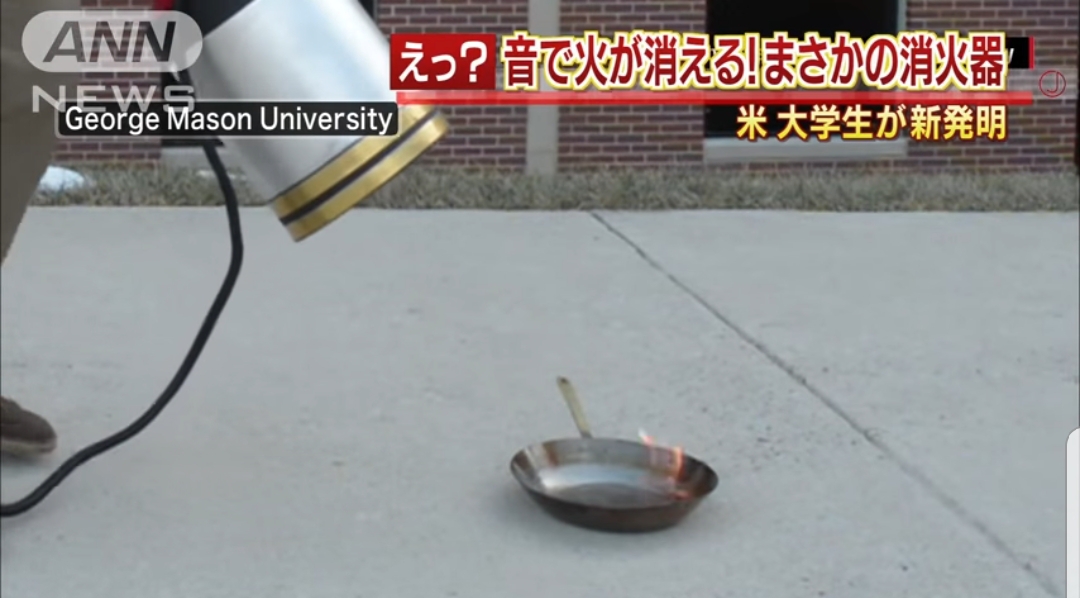 【画像】天才大学生、『音』で炎を消す消火器を発明してしまうwwww