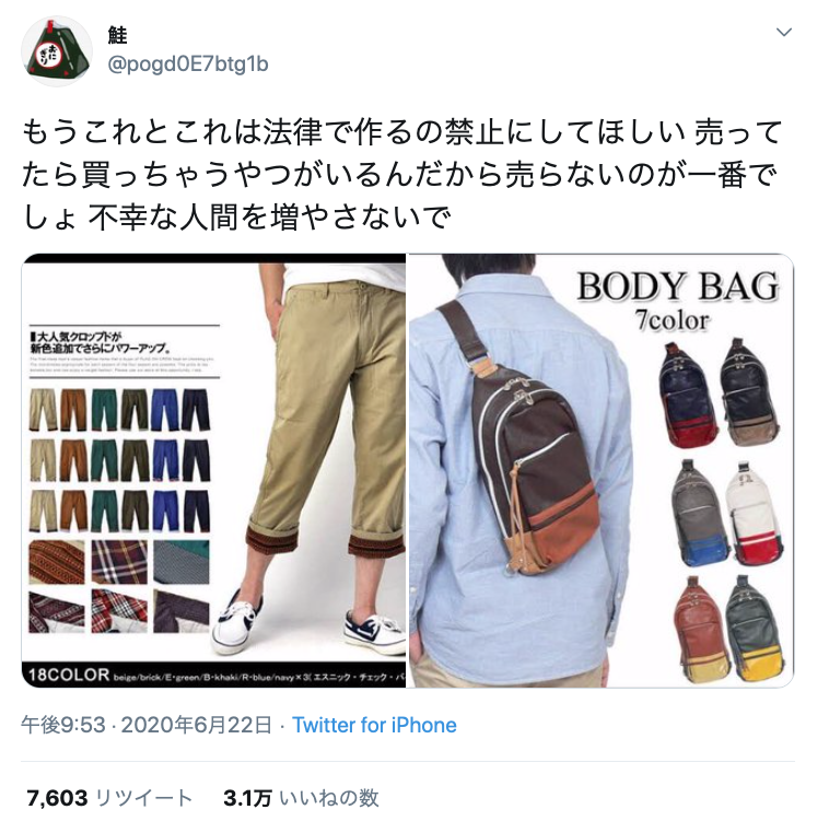 【画像】女さん「もうこのズボンとバッグは法律で作るの禁止してほしい。不幸な人間を増やさないで」