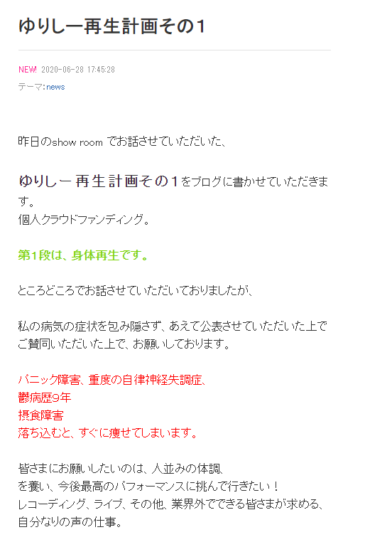 【画像】元声優さん、半年間の医療費と生活費を募集してしまうwwww