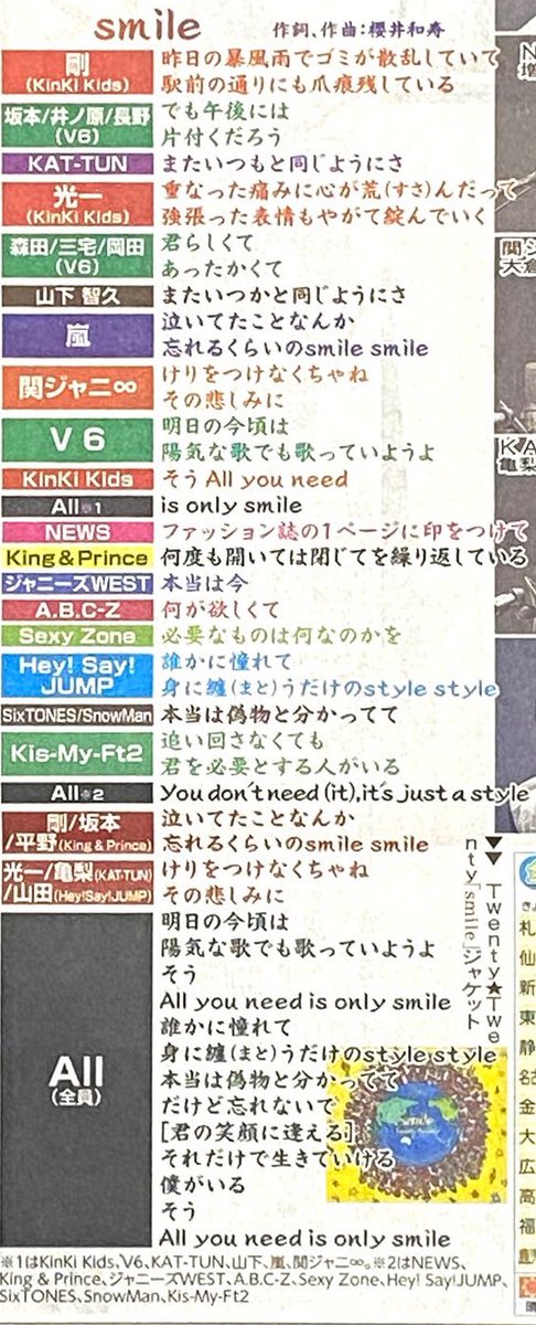 【画像】ジャニーズ全員参加の新曲、歌割りが偏りすぎてジャニオタが荒れしてしまう…