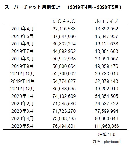 【画像】Vtuber集団ホロライブ、5月のスパチャ額が1億円を超えた模様…