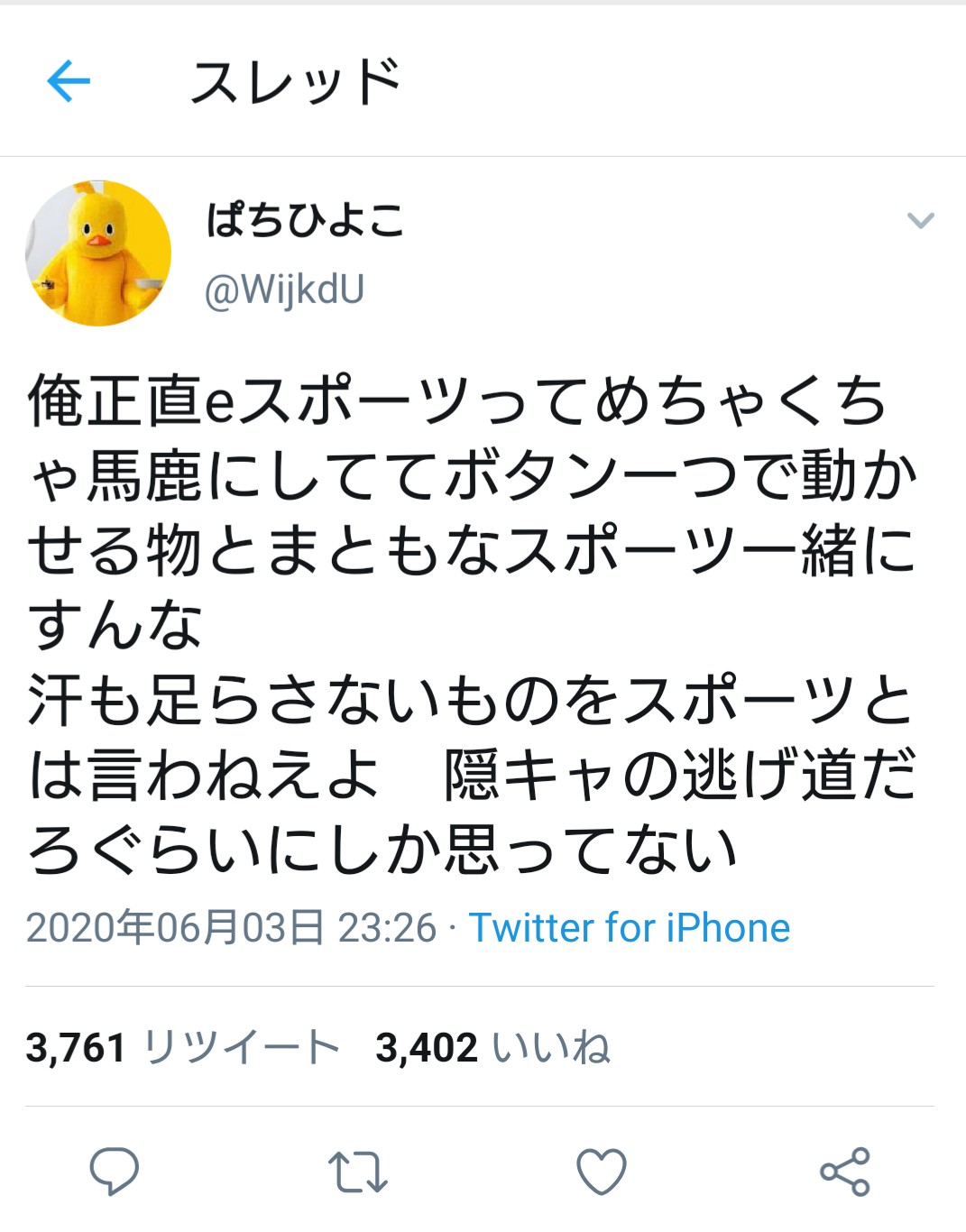 【画像】ツイ民「e-sportsは陰キャの逃げ道」 なぜか3000いいねもされてしまう…