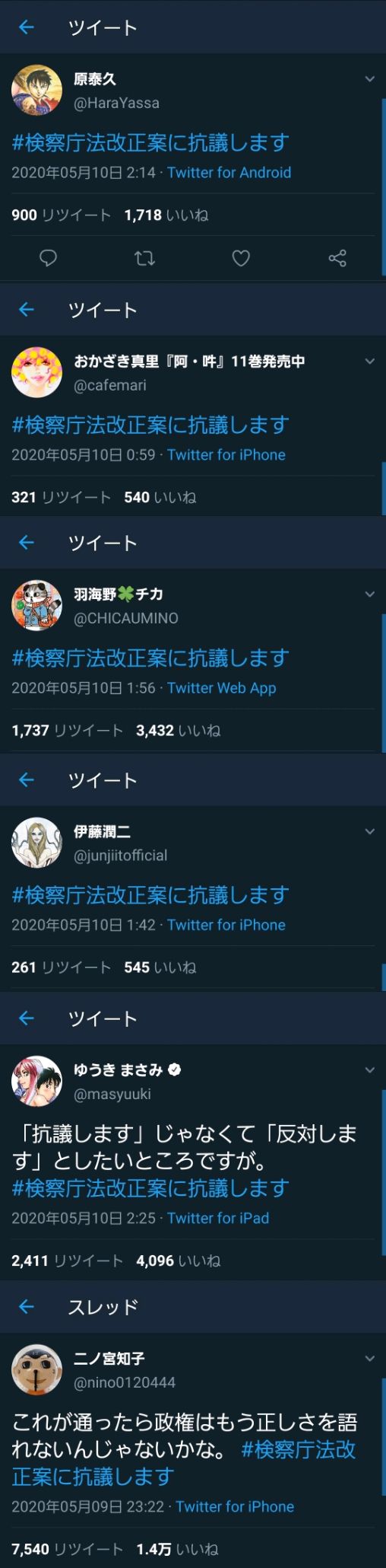 【画像】有名漫画家さん、続々と「検察庁法改正案」に抗議し始めるwww