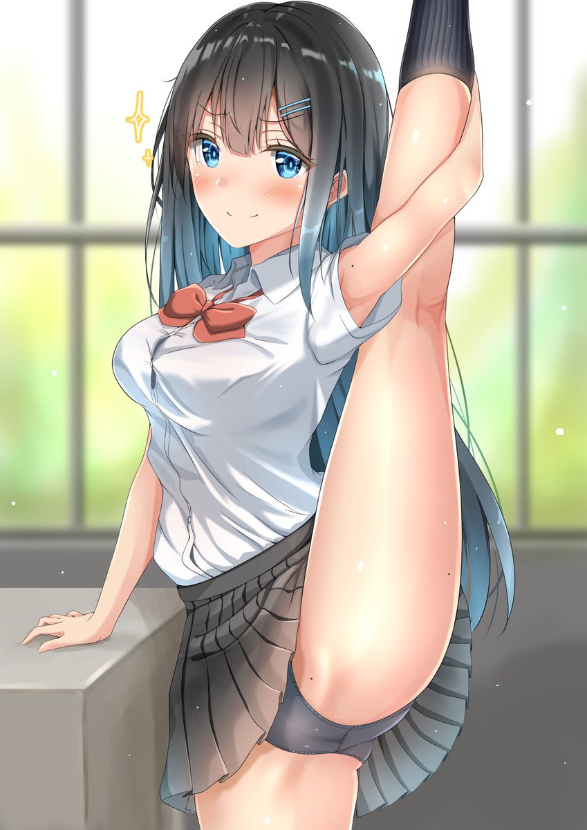 【画像】スク水を下に着てるから恥ずかしげもなくスカートでI字バランスをドヤ顔でする女子高生wwwwww