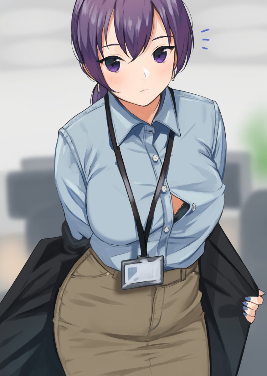 【画像】しっかりしてそうなお姉さんが、ボタンを掛け間違えてブラが見えてるんだが
