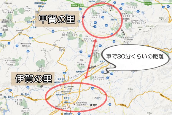 【画像】「伊賀の里」と「甲賀の里」、めっちゃ近くてワロタwwww