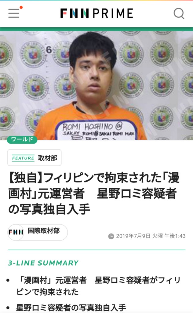 【画像】逮捕された『漫画村』元運営者の顔面、ガチで開示される