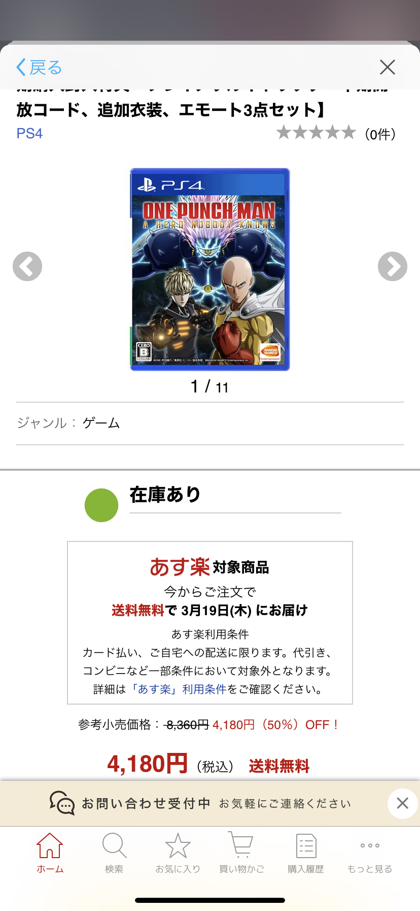 【悲報】PS4「ワンパンマン」、発売から3週間で新品50%オフwwwwwww