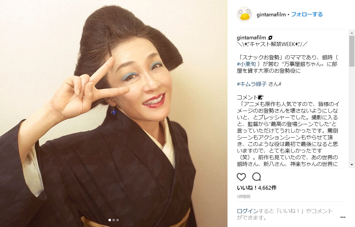 「どんどんお登勢な気分になってきました」実写映画「銀魂2(仮)」お登勢役をキムラ緑子さん担当