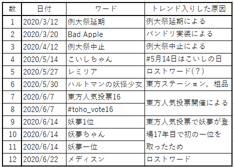 今年トレンド入りした東方ワード
