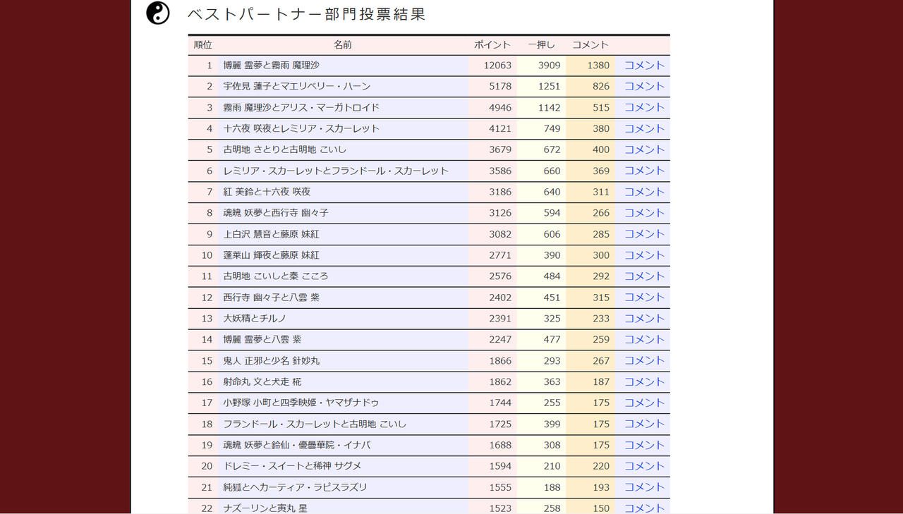 【東方】実のところベストパートナー部門が一番楽しかったよね