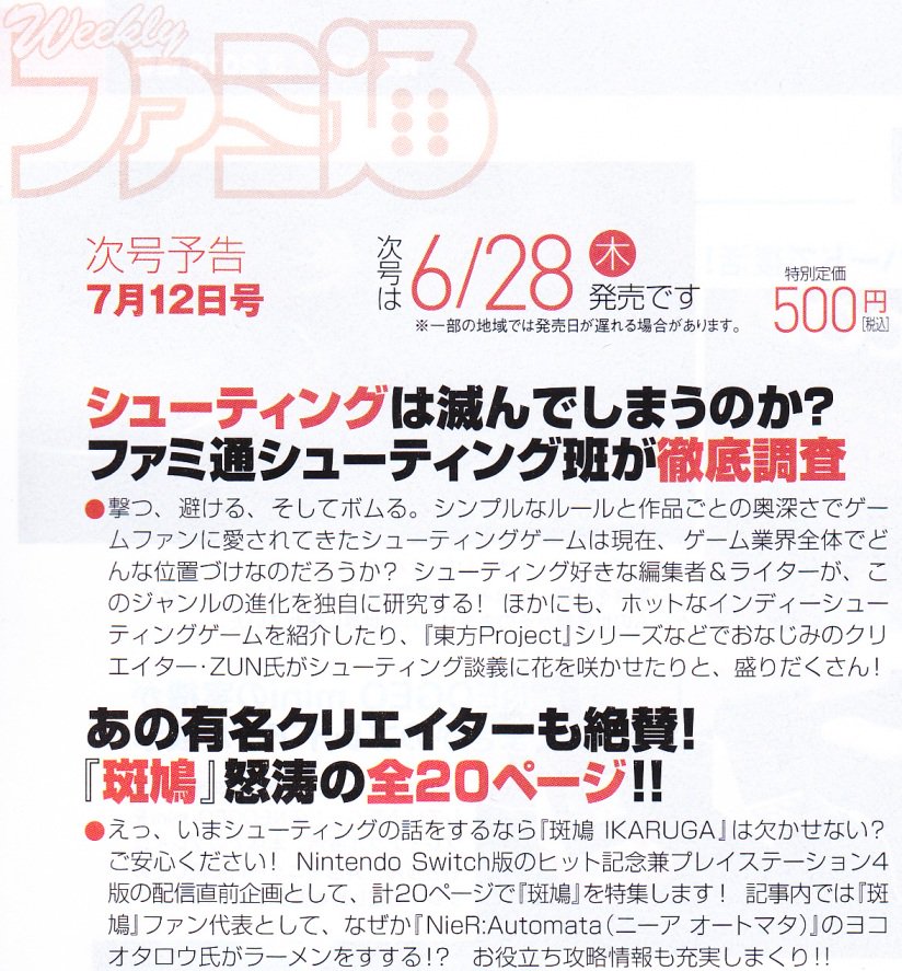 【東方】『ファミ通6/28発売号』でZUN氏のシューティング談義を掲載!