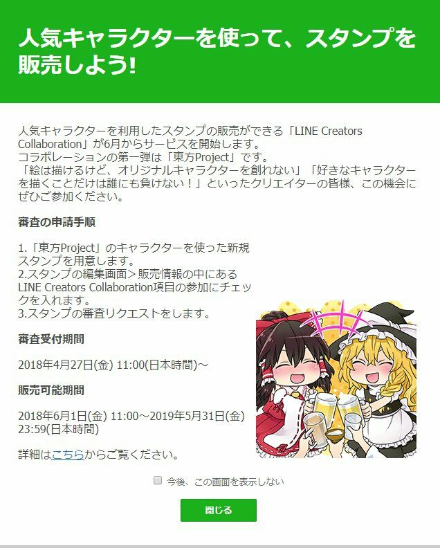 【東方】東方LINE二次創作スタンプサービスの続報が未だ無し。あと3日で情報が来るのか。現在の問題点は・・・