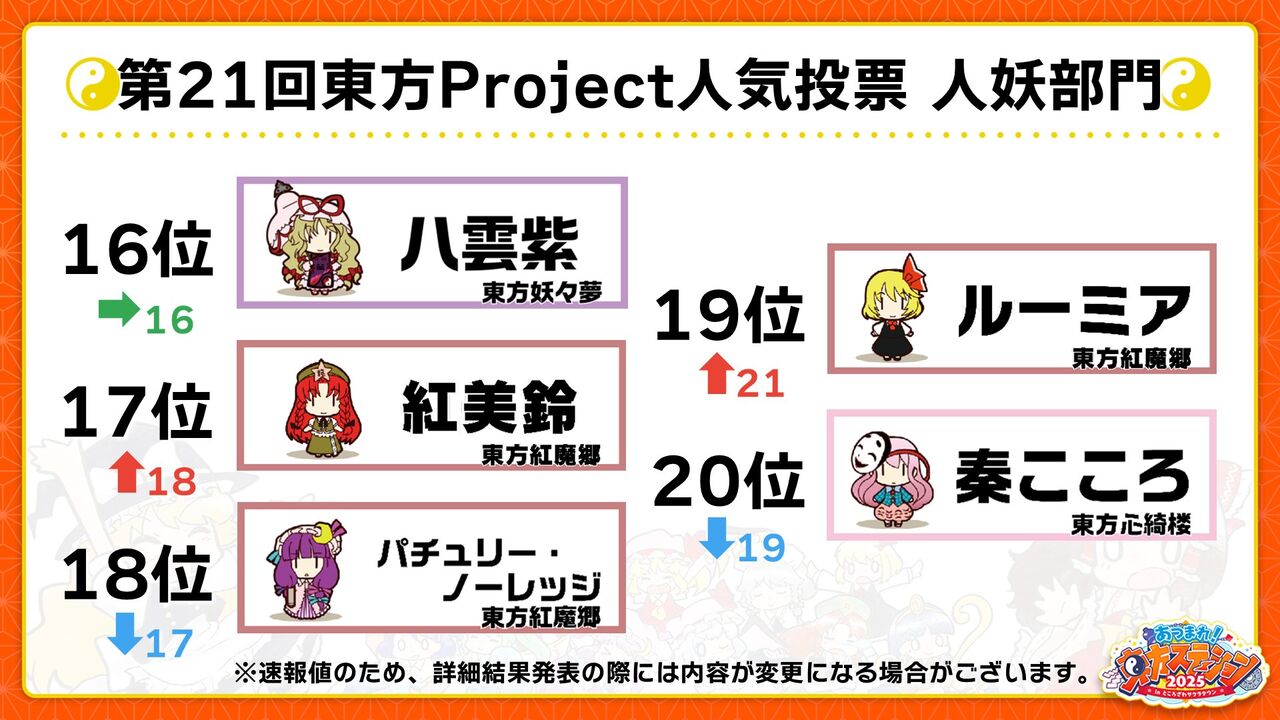 【東方】人気投票20位以内のメンツも割と固定されてるよね
