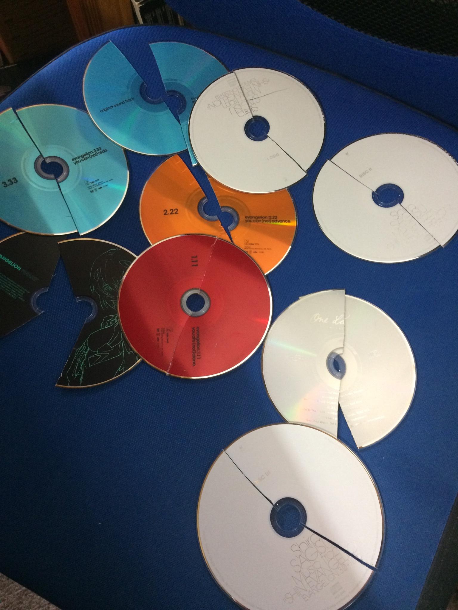 【画像】エヴァに脳破壊されたオタク「もう卒業だ。全部終わりにしよう」→DVDを叩き割ってしまうwww