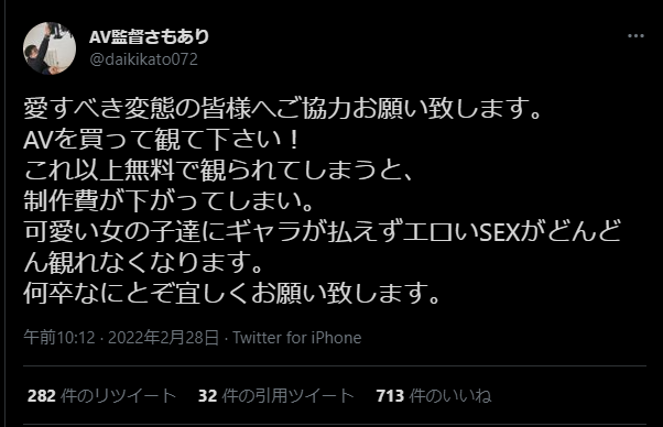 【悲報】アダビデを違法DLしてたVtuberさん、出演女優と監督からお気持ち表明されてしまう