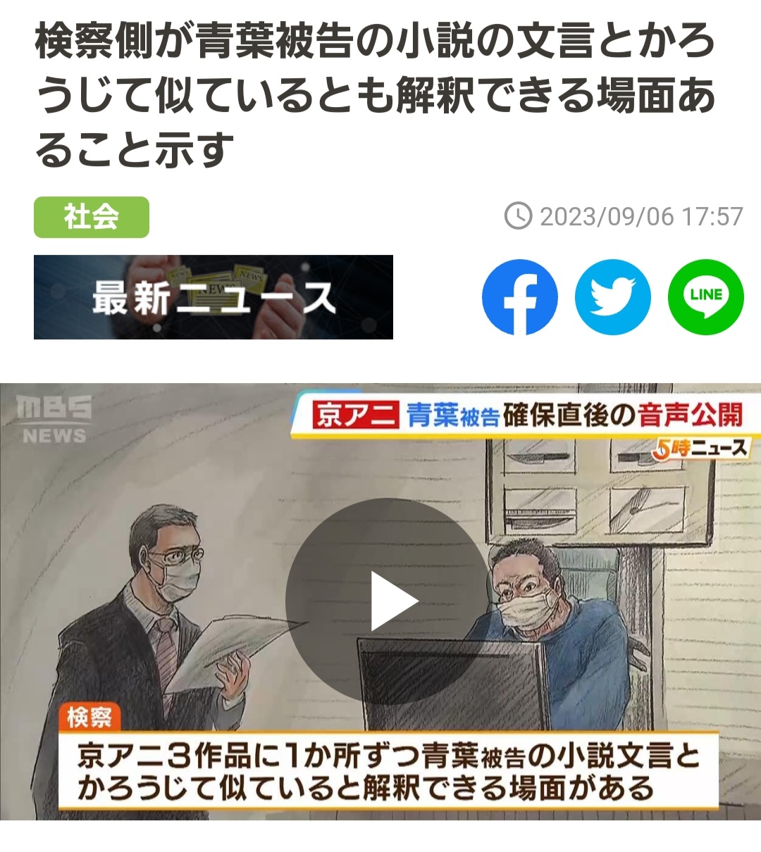 【速報】京アニ放火事件検察「青葉被告の小説の文言と似ているとも解釈できる場面ある」