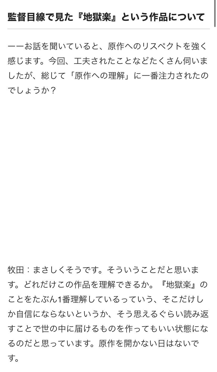 【朗報】アニメ地獄楽監督「原作の魅力を最大限に引き出す。我は出さないよう意識してます」
