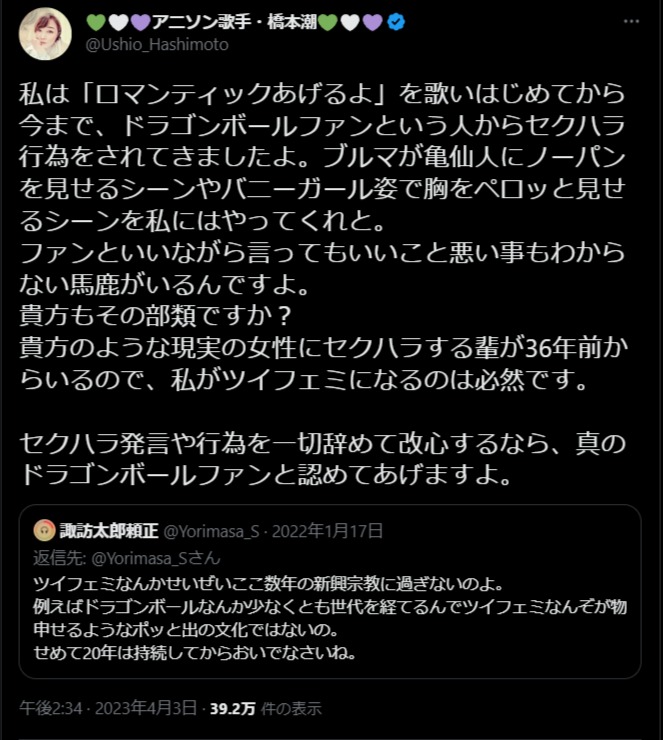 ドラゴンボール歌手「私がツイフェミになったのはドラゴボファンのせい」