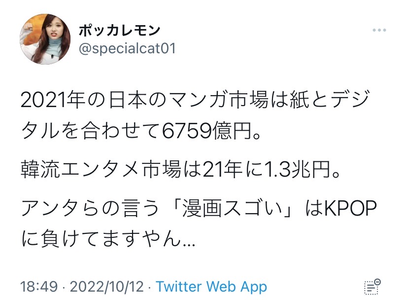 オタク「日本のマンガ産業は凄い!」 女さん「でもK-POPに負けてますやんw」 オタク「」