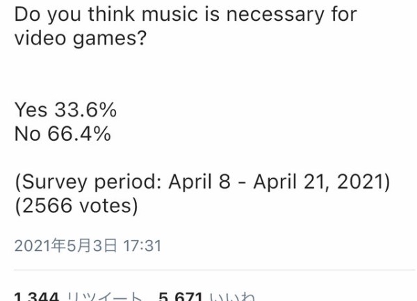 【悲報】海外「ゲームに音楽はいると思う?」→衝撃の結果へwwww